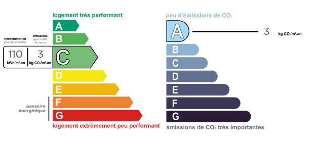 A l'étage, un grand salon climatisé avec de multiples ouvertures, cheminée avec insert, une salle à manger avec cuisine américaine donnant sur une très belle terrasse et sa vue mer à 180 °.
